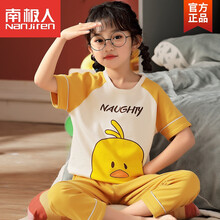 南极人品质童装 儿童睡衣女童夏季棉质短袖长裤薄款女孩中大童卡通宝宝夏天家居服 5596小黄鸭短长QD S码身高143-153cm体重65-85斤