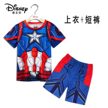 迪士尼(Disney)钢铁侠蜘蛛衣服短袖男孩T恤套装夏季儿童侠美队衣服装cosplay披风 短袖美队套装 110码(100-110cm)