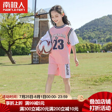 南极人童装女童套装夏装儿童篮球服2021新款学生女孩短袖速干t恤球衣短裤3-12岁时尚洋气运动装衣服 粉色球衣 160cm(正常码请勿拍大)