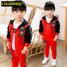 【三件套】邻家米其童装男童套装秋装2021新款1-3-4-6岁儿童2春秋季5宝宝小孩衣服男孩 XT6414(外套+T恤+裤子)-红 色 110码建议身高100-110cm(3-4岁)