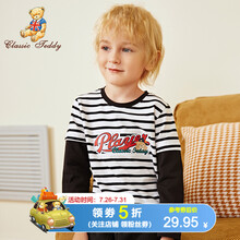 精典泰迪Classic Teddy童装儿童T恤男童长袖上衣中小童春秋季外出衣服宝宝圆领衣服 条纹破色黑白条 140