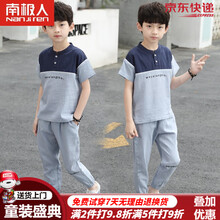 南极人童装男童套装夏装棉麻短袖t恤速干儿童衣服2021夏季新款中大童男孩休闲运动装6-15岁 蓝色 160cm【夏装新品 质量保证 放心选购】