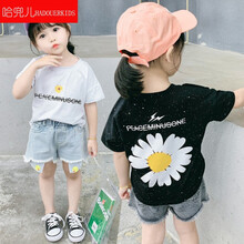 哈兜儿 女宝宝夏装面膜t女童t恤夏装小童纯棉短袖儿童装衣服上衣洋气半袖 蓝色短裤 130