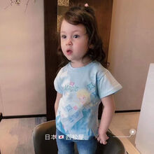 西松屋同款儿童装短袖t恤夏宝宝衣服纯棉男女中童夏装薄2021新款 天蓝色冰雪女王2124 120cm