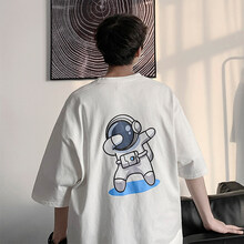 ℘15至18岁男生初中生高中生夏天穿的后背宇航员印花短袖T恤男夏季青少年宽松上衣服潮牌百搭半袖体恤 白色 S