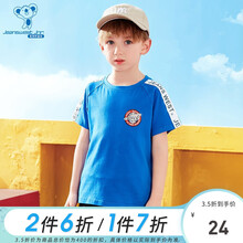真维斯Jeanswest童装男童短袖T恤儿童半袖上衣中大童休闲T恤宝宝夏季衣服 袖子白色织带2宝石蓝 110