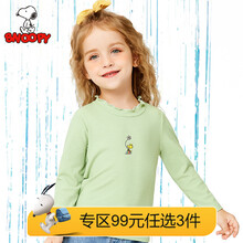 史努比SNOOPY童装女童打底衫小女孩长袖t恤宝宝长袖上衣 百搭打底衫-绿色 120CM