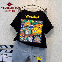 俞兆林 男童装时髦套装洋气夏装2021年新款帅宝宝短袖夏季时髦儿童衣服潮 黑-单T恤-皮卡丘 140码
