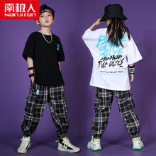 南极人童装新品夏季街舞儿童套装帅气男童嘻哈架子鼓练功服女孩宽松爵士舞小孩子演出服 黑色T恤 170