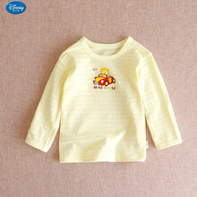 迪士尼儿童竹节棉长袖T恤男女宝宝薄款打底衫居家睡衣空调服无荧光小孩子穿的 竹节棉长袖 黄底狮子车 130码身高125cm左右