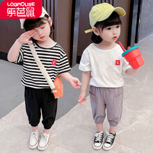 乐芭鼠童装女宝宝套装夏装洋气儿童衣服夏季新品运动幼童中小童1-7岁女孩休闲条纹T恤裤子两件套 条纹 110码建议3-4岁(身高100-110cm)