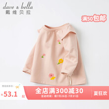 davebella戴维贝拉童装洋气女童长袖T恤儿童打底衫女宝宝t恤秋装新款幼童秋款幼儿上衣 灰粉色 100cm(建议身高90-100cm)