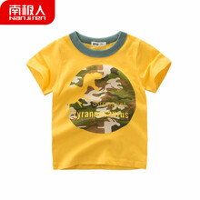 南极人童装短袖男童T恤夏装2021新品儿童纯棉圆领上衣小男孩打底汗衫2-9岁幼儿园宝宝夏天 金黄 130码 建议身高120cm左右