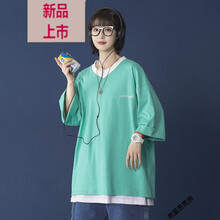 奕聪倔强简约V领短袖T恤男夏季情侣装上衣服潮牌ins2021新款潮流半袖体恤 青绿色 S