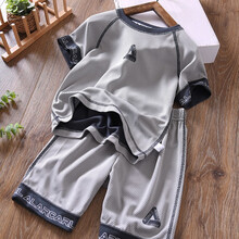 南极人品牌特卖t恤儿童速干男童夏装套装儿童短袖短裤夏季速干网眼印花冰丝中大童T恤薄宽松 灰色 衣标130,建议身高130