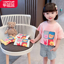乐芭鼠童装宝宝短袖t恤女夏装新款儿童T恤衫中小童上衣薄款宽松休闲卡通可爱打底衫小孩夏装衣服 粉红色 100码建议2-3岁 ( 90-100cm )