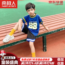 南极人男童套装夏季儿童篮球服中大童速干球衣2021夏款小男孩休闲运动装纯棉t恤五分短裤背心三件套 蓝色 170