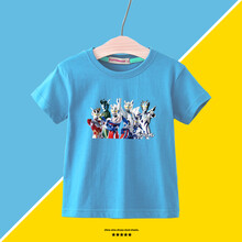 夏天短袖小学生女宽松奥特曼赛罗男儿童宝宝小孩子圆领T恤上衣服亲子装 湖蓝色赛罗合集 儿童 120(30-40斤)