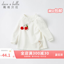 davebella戴维贝拉童装洋气公主上衣女童t恤儿童T恤2021新款秋装婴儿女宝宝打底衫 米白 90cm(建议身高80-90cm)