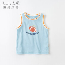 戴维贝拉2021夏季新款童装男童洋气印花无袖T恤小童宝宝时尚纯棉背心 蓝色 90cm(建议身高80-90cm)