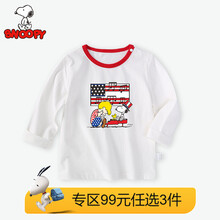 史努比SNOOPY童装男童t恤春秋新款小男孩圆领长袖上衣宝宝外出衣服 钢琴史努比领口撞色-白色 100CM