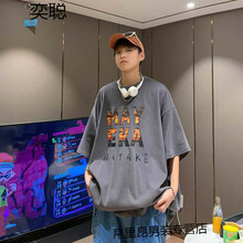 奕聪男装新品 潮牌21年T恤短袖男夏季薄款宽松潮牌衣服i 深灰色 L