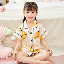 界方ℂℂ℘小孩子穿的百变潮搭酷夏季儿童短袖冰丝睡衣男童小女孩宝宝卡通可爱开衫薄款家居服套装 673#女童 16码建议身高140-150cm