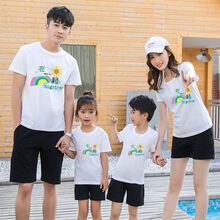 幼儿园运动会班服亲子装夏装新款潮三口一家人短袖母女装纯棉T恤 白 宝宝90(建议15-25斤)