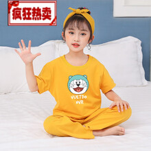 界方【新品】1-14岁6岁洋气小孩夏天穿的儿童睡衣女夏季纯棉短袖长裤套装男童卡通中大童宝宝薄空调家 H-机器猫#黄色女童-短长装 18码【141-150身高】