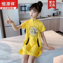 国货之光恒源祥女童连衣裙夏季旗袍裙子中国风中大童公主裙儿童装汉服夏季2021新款洋气女孩短袖T恤裙子 黄色 160