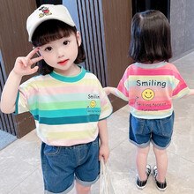 蚁派童装女宝宝t恤短袖夏季新款洋气时尚休闲儿童衣服女小童上衣运动夏天条纹打底衫1-3-7岁 蓝色(短袖t恤) 100码建议2-3岁 (身高90-100cm)