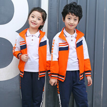 曼佳尔幼儿园园服春秋套装新款2021中小学生校服教师运动服儿童纯棉班定制 橘色三件套外套裤子T恤 吊牌160码适合身高145-150cm