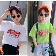 夏季新款@2021新款儿童背心冰丝宽肩男童短袖T恤宝宝衣服中大童小男孩上衣 白色卡通+绿色卡通(两件更划算) 120 码(建议身高110厘米)