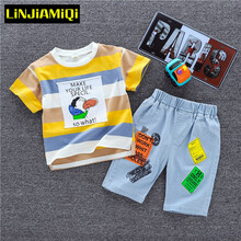 邻家米其童装男童套装夏装2021新款2-3-4-6岁宝宝儿童牛仔两件套5夏季7男孩小孩衣服 XT1161(T恤+中裤)-黄 色 120码建议身高120cm左右(5-6岁)