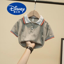 迪士尼轻奢男童新款短袖POLO衫T恤夏装夏季童装儿童1岁3宝宝中小童上衣潮专卖旗舰 小动物灰色 110