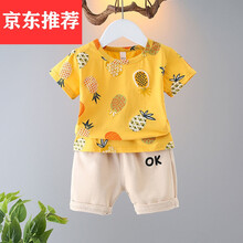 凯飞扬仙美搭配男童短袖套装夏季韩版婴幼儿童夏装男童背心套装T恤短裤童装 黄色菠萝上衣+卡其色裤子 120
