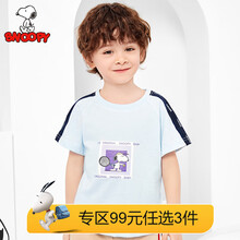 史努比SNOOPY童装男童短袖t恤夏季新款儿童半袖上衣宝宝夏装 网球史努比-浅蓝 90CM