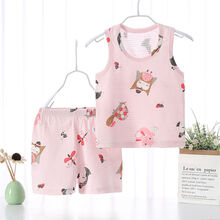 踏舰1-14岁6岁小孩夏款儿童背心套装纯棉冰丝棉空调服家居服睡衣0-7男童女童T恤短裤旗舰童装 背心-粉底松鼠 120 cm(闭裆)