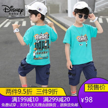 迪士尼童装男童套装夏装2021新款儿童套装韩版运动休闲衣服中大童帅气小男孩T恤工装裤两件套3-12岁 湖绿色 140