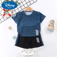 迪士尼【特价捡漏】儿童短袖套装跑步运动服休闲速干衣男女童夏季新款T恤短裤两件套 B02 90