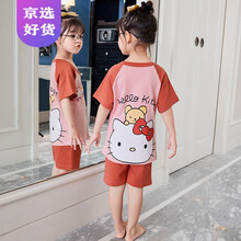 の【新品】3-12岁洋气小女孩穿的儿童睡衣夏天纯棉薄款女童短袖卡通可爱女宝宝中大童家居服套装 RS双短棉女童KT猫 85cm(14码建议身高130-140cm)