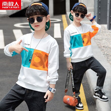 南极人童装男童T恤长袖2021春秋季新款儿童打底衫中大童韩版时尚圆领t恤男孩休闲卫衣宝宝秋衣单件上衣 白色 120
