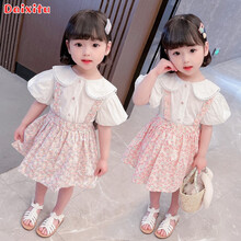 带禧兔童装女童套装夏装儿童套装女宝宝衣服夏季运动幼童中小童夏款1-7岁女孩休闲短袖T恤短裤两件套 粉红色 110码建议身高95-105cm