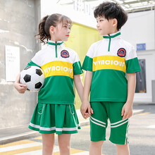 儿童运动套装男女童夏装两件套立领短袖T恤短裤短裙中小学生校服班服幼儿园服童装中大童2020年新款定制 男绿套装 150
