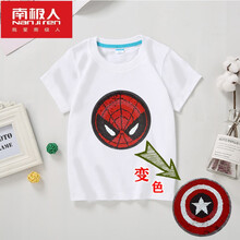 南极人儿童变色恐龙图案翻面亮片衣服男童女童短袖T恤半袖奥特曼夏装潮t 白色蜘蛛侠变美队 130cm