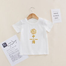 国服刺绣中国男童童中国字样上衣2021新款夏季儿童宝宝中国风短袖T恤半袖衫 白色 130码