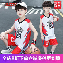 史努比设计师联名男童套装夏装2021新款篮球服儿童装套装中大童时尚运动休闲背心T恤短裤夏季男孩衣服3 红色 160码【建议身高1.5米左右】