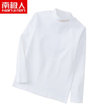南极人儿童打底衫中高领纯色棉质内衣棉毛衫秋冬上衣男童中大童T恤女孩宝宝保暖上衣半高领秋衣薄款 白色中领 140