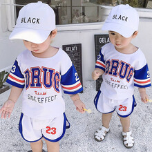 迪士咪鲁男童套装夏装2021新款运动休闲1-3-4-6岁儿童装宝宝男孩2夏季5两件套小孩衣服 XT6537(T恤+中裤)-白 色 90码建议身高80-90cm(1-2周岁)