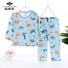 俞兆林品牌 儿童短袖/长袖套装夏季男童家居服女童薄款棉T恤空调服宝宝新款 小帽恐龙【长袖+裤子】 130(建议身高120-130cm)